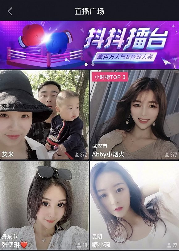 由于监管原因,抖音直播最终在去年7月上线。上线后的半年时间里,抖音直播表现一直不温不火。这主要因为抖音直播在功能玩法和流量分配上的“克制”。2018年,抖音直播只有直播、刷礼物以及抢榜等最基础的功能,玩法单一。在流量入口上,只有App顶部直播栏及直播广场,没有与短视频打通。