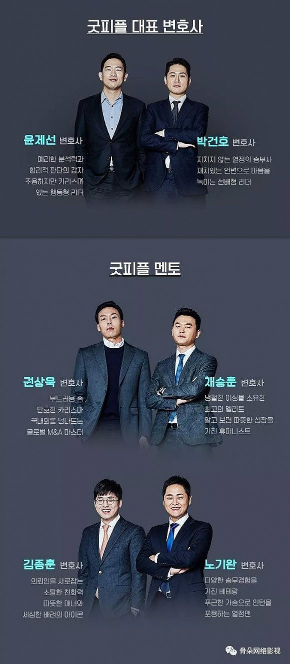 其实远不止于实习生,在竞争期间担任他们导师角色的四位律师也颇具特色。他们履历光鲜,都是从韩国司法研修院结业,私下也有画画、潜水等业余爱好。和电视剧的行业角色扮演相比,他们打破了一些刻板的职业印象,让社会精英也有着温情和平凡的一面,更加符合现实生活。