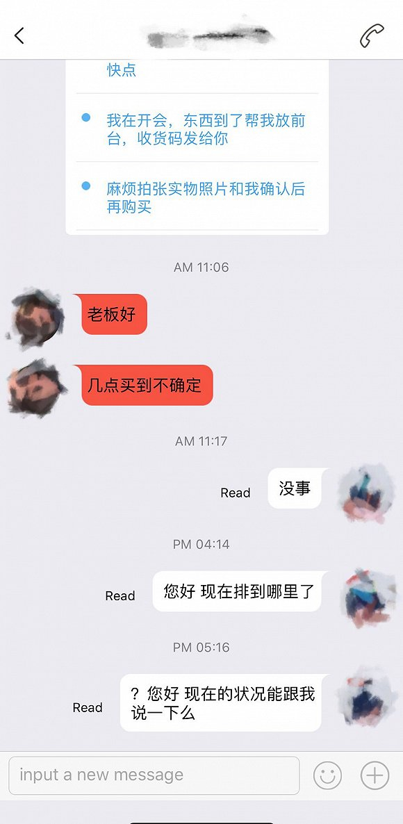 不一会儿代购打来电话解释:他排了6个多小时,但商家不卖了,尽管当时才晚上7点。