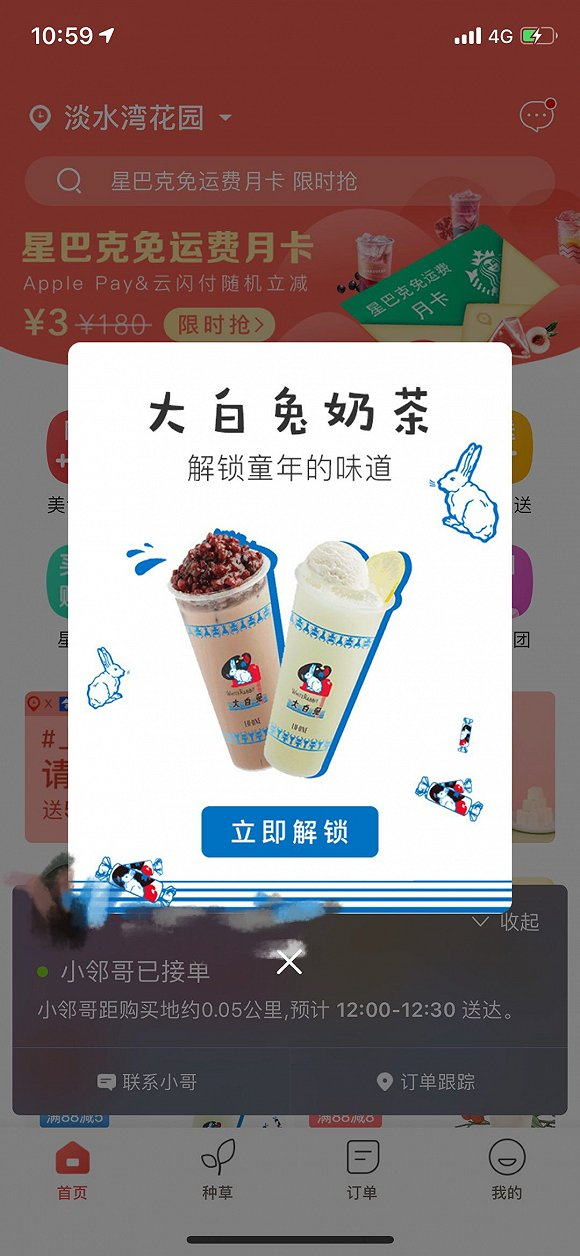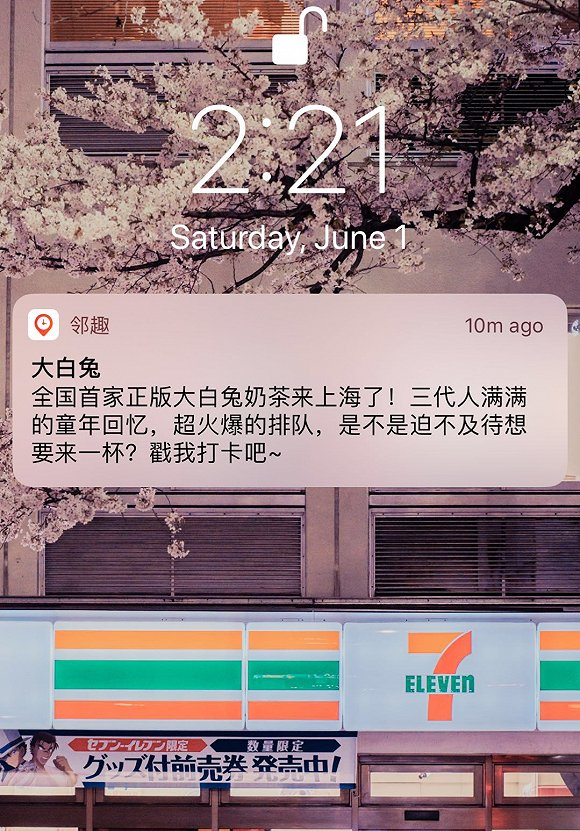 周六,邻趣又给我发来了大白兔奶茶的弹窗广告。图片来源:刘雨静