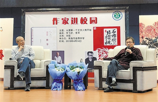 4月中旬,北京师范大学国际写作中心珠海中心挂牌,莅临的作家叶兆言、阿来在首届“京师南国文学论坛”上结合自己的经历发表对“读万卷书,行万里路”的观感,毕飞宇、李洱则给珠海金鼎中学300多位师生、家长上了一堂别开生面的文学课。