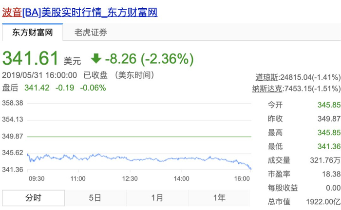 损失不只是赔偿而已,虽然,米伦伯格称这场危机不太可能对波音财务构成重击。但事实上,自空难发生以来至四月底,波音737 Max的新订单数量就停滞为零。波音也撤销了对2019年全年的业绩预测,以及暂停股票回购事宜。截至发稿,波音的股价为341.61美元。