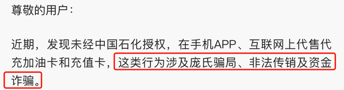 近两年,中石化曾多次提醒消费者当心代充加油卡骗局,也说明很多第三方代充平台只是打着中石油、中石化的名义开展业务。
