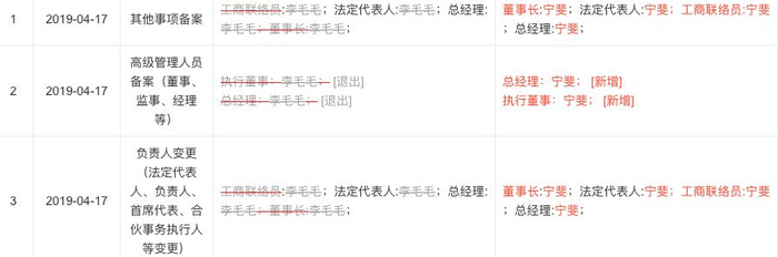 而博实(深圳)商业保理有限公司在4月份刚刚进行工商变更,法人、高管等都从李毛毛变更为宁斐。
