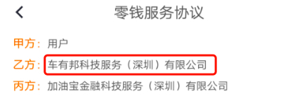 而且这个产品的乙方就是上面提到的与加油宝有直接关联的车有邦科技服务(深圳)有限公司。