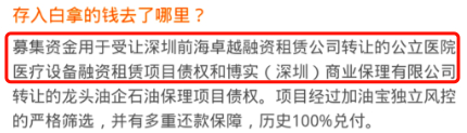 针对盈利模式方面的疑问,平台介绍,还贷宝的资金用于深圳前海卓越融资租赁公司的公立医院医疗设备融资租赁项目,0元购的资金除了用于医疗设备还会受让博实(深圳)商业保理有限公司转让的石油保理项目债权。
