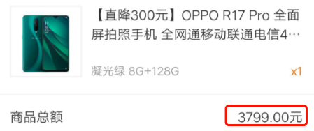 值得一提的是,如果不选择分期,白拿商城的商品价格比市场价高得多。比如京东售价2699元的手机,加油宝卖3799元,足足贵了1100元。