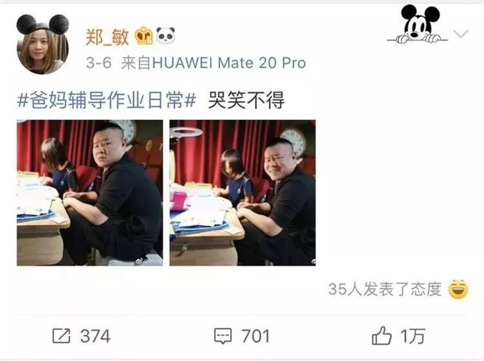 其实,小岳岳已经不是第一次因为孩子写作业发微博了,不信,看看岳云鹏的老婆郑敏发的微博就知道了↓↓↓