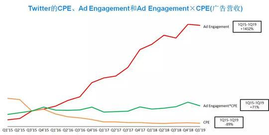 1Q15-1Q19 Twitter的CPE、Ad Engagement和广告营收