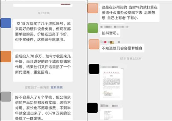 除了校园设备供应商,代理商中还有很大一批人是老师和公务员。他们都是自认为有资源进入学校的人,但很多人斥巨资加盟后,迎来的不是躺着收钱,而是巨亏甚至被取消代理资格。