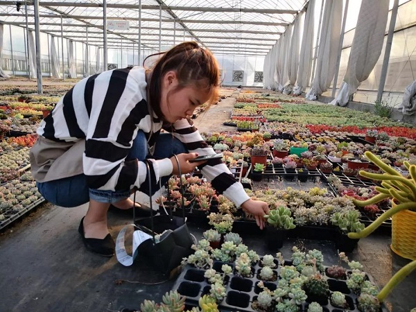 李平告诉我,他还去了南京找专家请教。两年时间,不仅完全掌握了400多种多肉植物的栽培技术。当初为了打开多肉植物的销路,李平误打误撞,尝试了一下在网上直播卖多肉,没想到这一尝试,还带火了当地的一个产业。