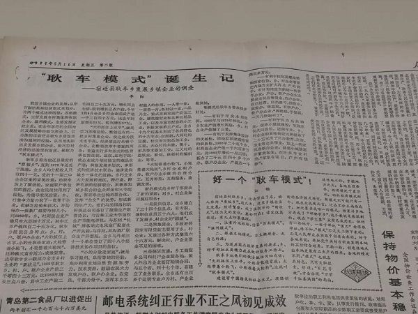 1986年5月16日出版的《人民日报》,当时“耿车模式”作为经验被广泛宣传 (央广记者景明摄)