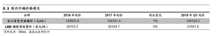 锡的价格在2018年历经几次上涨回落,但国内外均价同比2017年均较为稳定。展望2019年,我们认为锡下游需求较为稳定,而供给端方面,最大变量在于缅甸锡矿。由于缅甸锡矿资源逐渐减少的趋势在发现全新矿山资源前不可逆,我们预计其锡矿产出仍将持续减少。根据微信公众号国际锡业协会文章显示,ITRI预计2019年中国进口缅甸锡矿将减少8600吨,同比减少16%。