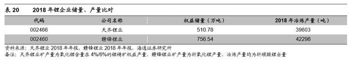 锂行业龙头企业为天齐锂业和赣锋锂业两家公司。天齐锂业拥有澳洲格林布什矿51%的股权,资源禀赋好。赣锋锂业拥有澳洲MT Marion43.1%的股权,并持有Pilgangoora、Cauchari-Olaroz等项目少数股权且签署有包销权协议。