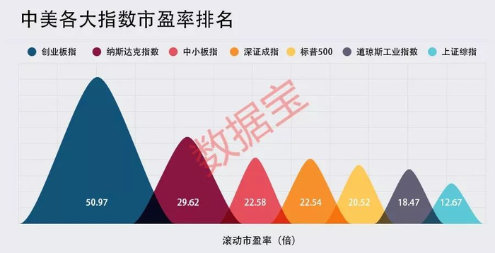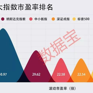 而对比A股和美股各大指数看,A股上证指数市盈率12.67倍,深证成指市盈率22.54倍,中小板指22.58倍,因为业绩爆雷潮创业板指市盈率接近51倍。美股方面,纳斯达克指数市盈率接近30倍,标普500指数市盈率20.52倍,道琼斯指数市盈率18.47倍。
