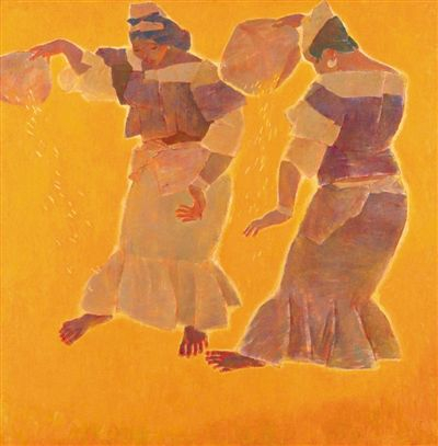 鸥洋、庞涛、何韵兰是老一辈女性艺术家中新形式的开拓者。鸥洋不顾同行劝说,开始“意象油画”的探索。她笔下的女性和花卉柔美清澈,层次丰富,重视肌理效果,笔触的自由挥洒,形与色的层叠照应,就像河流中水波互相撞击、交汇一般,呈现出不同于西方油画的东方美。庞涛和何韵兰的探索,重在从传统文化或自然意象中提取母题,以平面化和抽象化的方式,表现历史的启示和生命的色彩。这些优秀女艺术家的作品境界更加超脱。