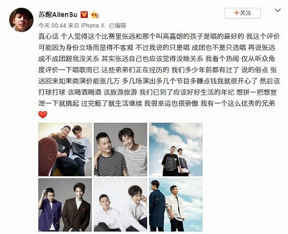 公认业务能力强的张远并没有最终成团,这个结果想必他自己也不会觉得意外。他的好朋友,07快男亚军苏醒凌晨发了一条微博,讲的还是很实在。