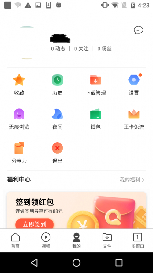 1.QQ浏览器最新版,进入“我的”页面,顶端有QQ/微信登录入口。