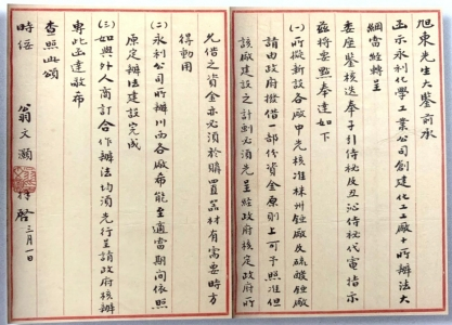 1944年3月,国民政府经济部部长翁文灏就“十厂计划”给范旭东的信函。