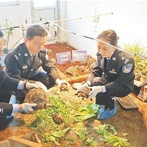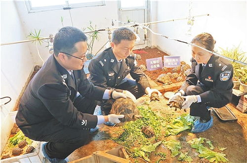 今年1月,无锡海关缉私分局和无锡市公安局联合出动警力50余名,对该案联合开展行动,共抓获犯罪嫌疑人10人,查扣《濒危野生动植物种国际贸易公约》(CITES)附录I、附录II项下陆龟989只,品种包括豹纹陆龟、辐纹陆龟、赫尔曼陆龟和苏卡达陆龟等,还查扣附录II项下美洲绿鬣蜥502只。
