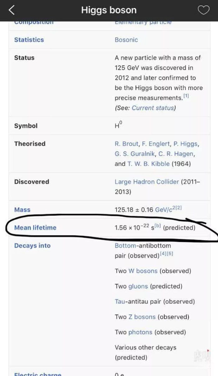 例如,在百度百科的“希格斯玻色子”词条当中,有一个数值的数据单位发生了错误,但是这个错误始终没有被改正。[11]