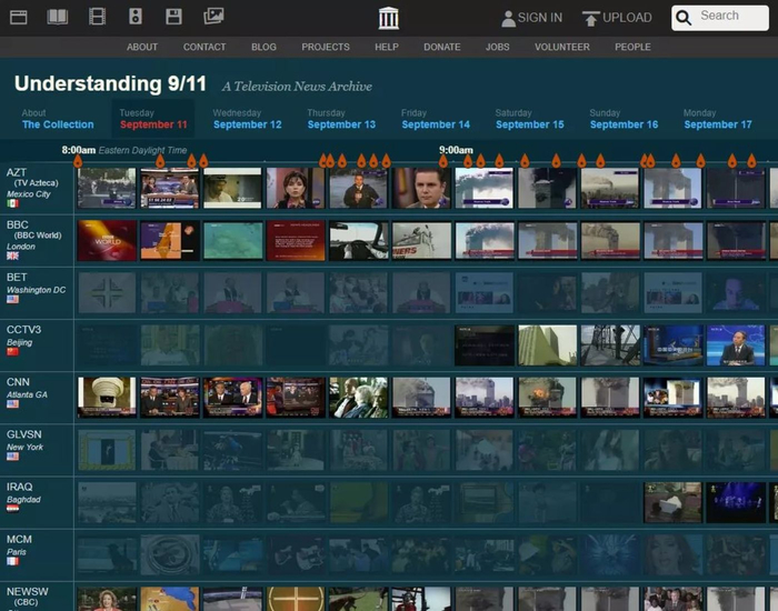 站内还有一个专门的分区 [4] 存储了 2001 年 9 月 11-17 日一周内美国境内能接收到的主要电视台,包括世界各国的国家电视台的新闻节目内容,可以带人们重回袭击现场,堪称美国版“爱国主义教育基地”。