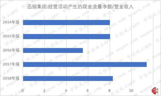我们看到,迅销集团近五年除了16财年呈较大回落以及17财年呈较大增长外,其余三年均平稳在8左右。16财年营业收入较上财年增长6.2%,而经营活动现金净现金流较上财年减少26.8%。