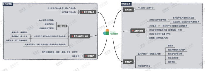阿里健康依托于前期建立的阿里健康网络医院有限公司,组织执业医师、执业药师和营养师等专业人员,为来自淘宝、天猫、支付宝等终端用户提供健康咨询服务和指导。