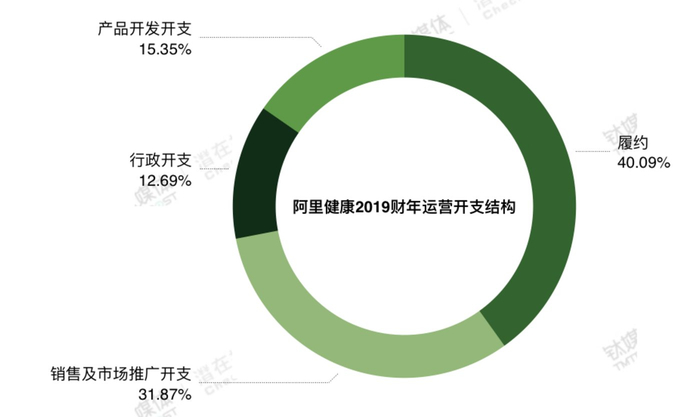 阿里健康2019财年运营开支结构,数据来源:2019财报,钛媒体制表