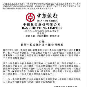 中国银行:中银金融科技有限公司在上海正式挂牌开业