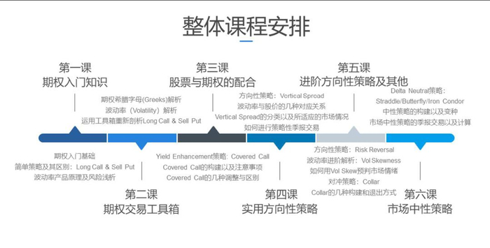 在完成此课程时,学员将掌握期权的基础知识和风险种类,并能运用基本的期权策略在不同的市场时进行策略性套利以及进行策略调整。为进一步学习高级策略打下扎实的基础以及初步具有策略拆分重组的意识。