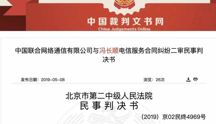 2019年4月,北京市第二中级人民法院作出终审判决。二审法院驳回联通公司的上诉,维持原判。