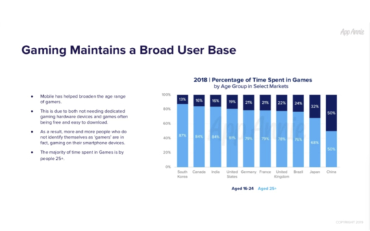 App Annie:手游占移动应用总下载量33%,25岁以上玩家在游戏上耗时最多