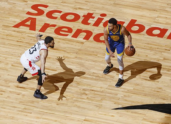 通常情况下,当通常情况下,当一名球员防守的对象拿到47分时,他不会指望大家的夸奖。但是,在猛龙对阵勇士的第三场比赛中,库里虽然拿到了47分,但在他的80次持球进攻中,33次对上了范弗利特,其中库里只成功了4次,两分球6投1中,三分球全部投失。库里的高速无球跑动会为他创造出1秒的进攻时间,这足以让他接球投三分。但是范弗利特会像粘人的伴侣一样死死地盯住他,让库里没有甩开自己的机会。