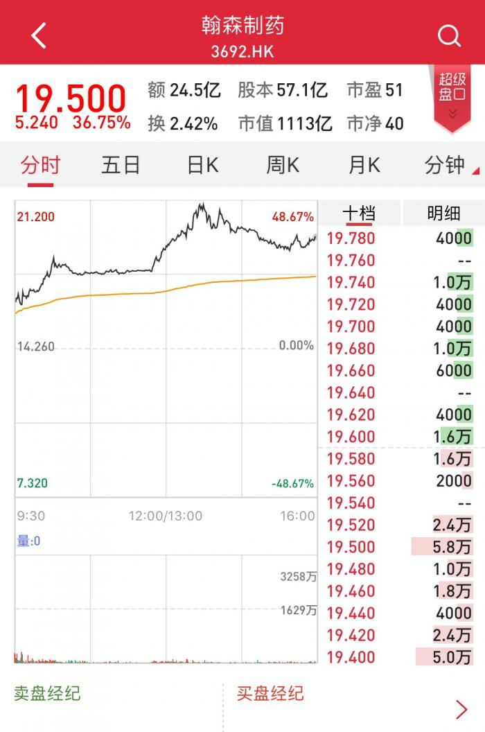 豪森上市暴涨37%成港股医药第一 “医药夫妻档”市值3700亿