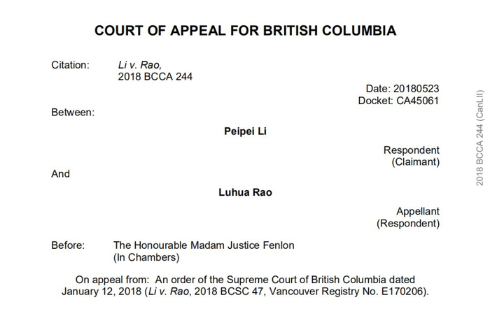温哥华最高法院法官认为饶先生试图获取不正当的优势,拒绝终止诉讼案件。而两人在加拿大是合法夫妻,另一名法官宣判饶先生必须支付李女士的赡养费,并且分割他的部分财产。