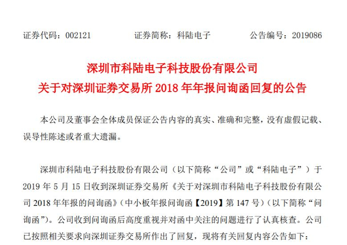 2018年,科陆电子还分别于6月29日,12月18日收到监管函。