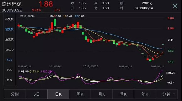 从6月10日开始,盛运环保5个交易日连续涨停,后面三天3个一字板,股价由最低的1.15元涨到了1.88元,市值达到24.8亿元。