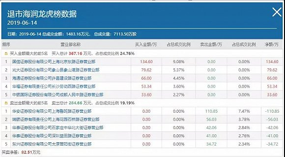 虽然股价创A股历史新低,但还有资金选择了“刀口舔血”。6月13、14日,退市海润连续两天登陆龙虎榜。
