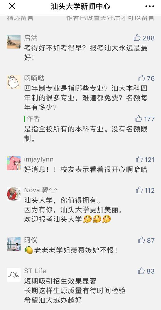 而汕头大学的官微底下评论也明确表示,全校所有的本科专业都能受益,而且没有名额限制。