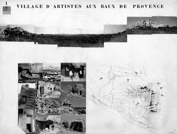 除了将建筑的造型原原本本记录下来,摄影究竟能为建筑做些什么?我们可以从科拉布的实践中得到些许启发。巴黎美术学院学习期间,科拉布就开始尝试将摄影融入到建筑设计得过程之中了。例如,相机可以作为捕捉和测试他设计得物理模型效果的工具——模型照片与透视画在景深的表现上截然不同。另外,调整光源、背景和建模材料,科拉布的设计可以呈现在不断变化的环境条件和氛围之中。而在完成毕业项目时,比起绘制大规模演示图用以描述毕业设计的情形,科拉布选择创作一系列整面墙的素描和效果图,将全景图、拼贴画、照片转绘和蒙太奇照片结合在一起。