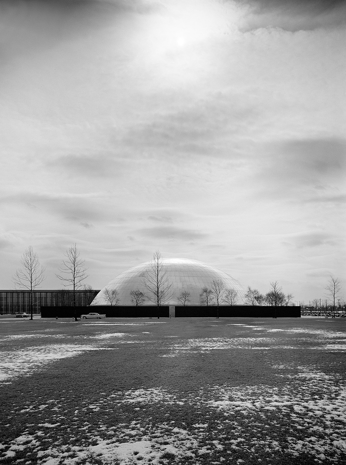 在科拉布的建筑和摄影事业刚刚起步的20世纪中叶,从建筑领域来讲,虽有一些并行的现代主义建筑正占据着西方建筑主导思想。这时,现代工业建筑材料对建筑的影响开始发挥更大的作用,诸如钢铁、玻璃、混凝土等“新”材料成为新一轮的焦点。建筑形式与功能的关系被重新审视,随之而来的是一些耳熟能详的名字,如弗兰克·劳埃德·赖特主张的“有机设计”,密斯·凡·德·罗提出的“少即是多”,柯布西耶的“机械美学”……现代主义建筑的形式由建筑的空间、结构和功能而来,因此这些建筑呈现出简洁、抽象甚至冷峻的视觉风格。这在科拉布一些早期的摄影案例中可以体现。