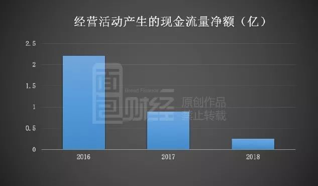 查看近三年的数据可以发现,公司经营活动产生的现金流量净额持续下降,从2016年2.21亿下降到2017年0.89亿,2018年进一步降低至0.25亿。