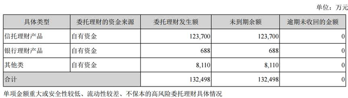 翻查2018年年报数据,截至当年年底,公司未到期的委托理财总额达到了13.25亿,其中信托理财产品12.37亿。
