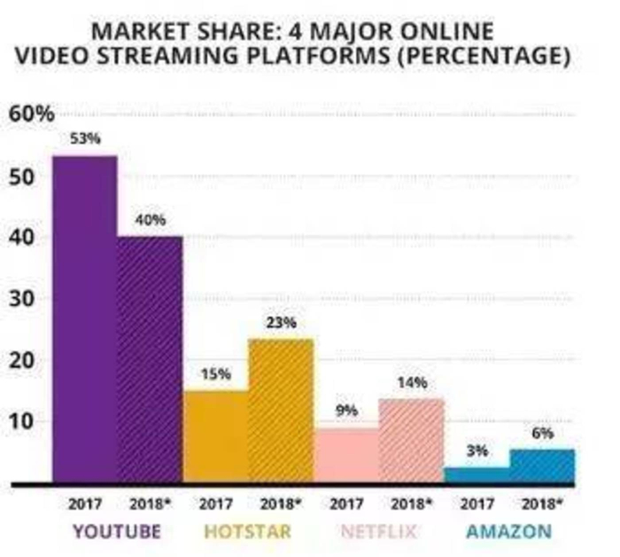 然而,自2016年推出以来,Netflix一直难以在印度获得市场份额,仅占据了1.4%的视频流媒体市场,而亚马逊Prime则占据了5%。