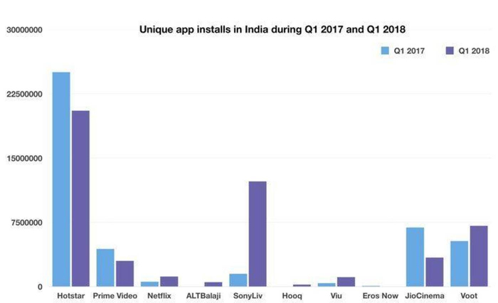 科技咨询公司Counterpoint Research的数据显示,截至2017年底,当时还在福克斯旗下的Hotstar流媒体服务每月拥有7500万活跃用户。作为对比,Netflix在印度拥有500万用户,亚马逊Prime Video拥有1100万用户。
