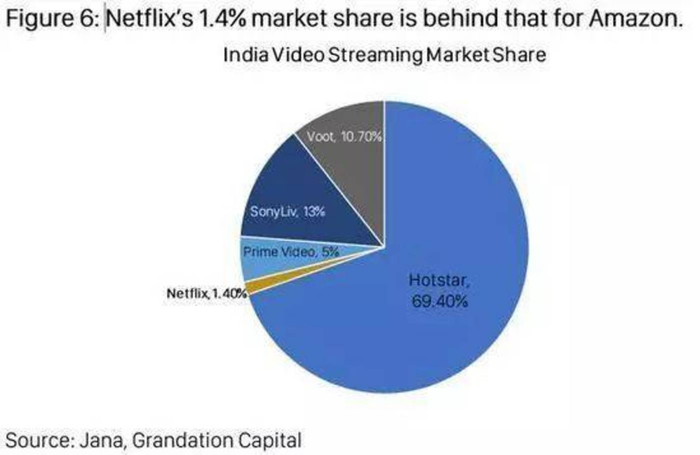 对于印度观众来说,Netflix太贵了,内容不够“本地”。像印度这样的新兴市场的受众对价格非常敏感。Netflix的费用是印度当地有线电视公司的两倍,这使得Netflix难以获得市场份额,尽管其拥有高质量的节目。