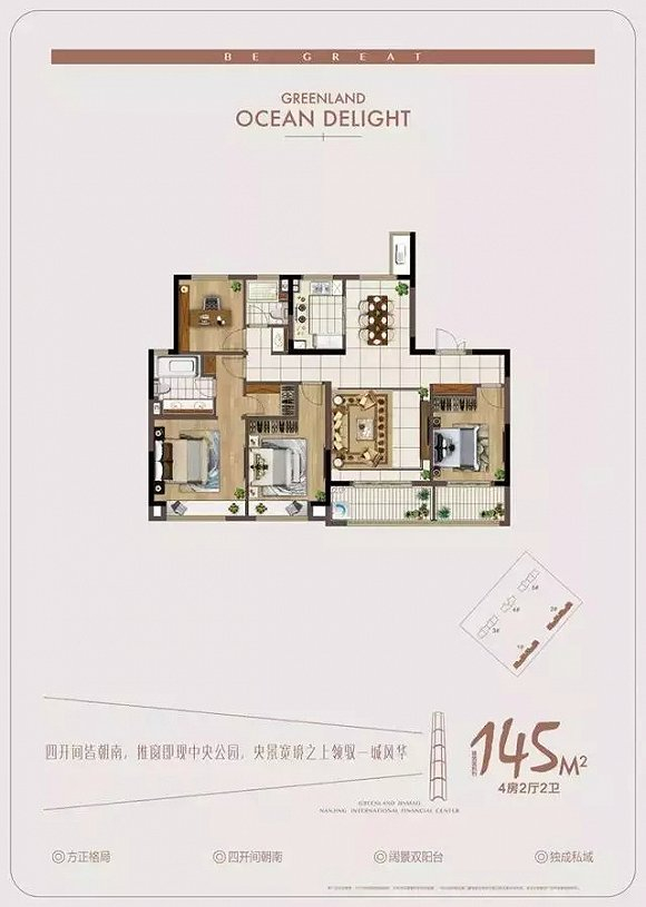 建筑面积145㎡户型四开间皆朝南,空间方正,动静双区格局划分独成领域,全维升级江北人居的空间尺度,并配有多重极致化收纳系统,空间立体拓展,部分功能空间可灵动改造,满足个性化打造需求,无限赋予未来生活的重新想象。