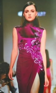 上海老裁缝褚宏生弟子周朱光团队制作的现代旗袍。