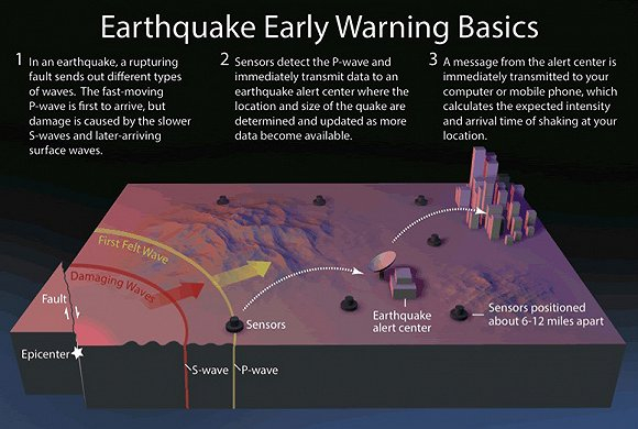 地震预警原理示意图。图片来源:USGS